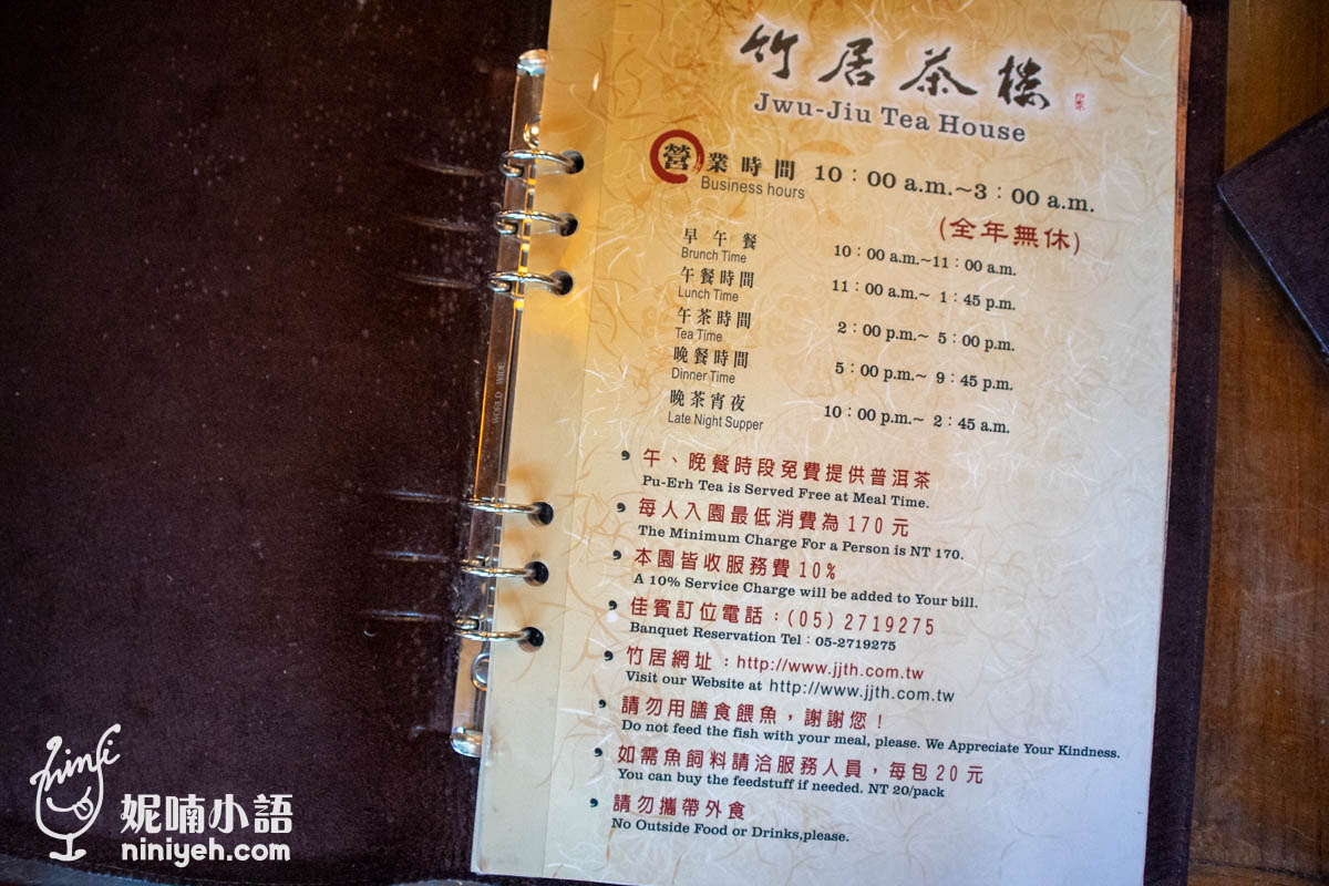 『竹居茶樓』營業時間從早上十點一路開到凌晨三點,全時段都有餐點供應,但五、晚餐時段最齊全,下午茶、晚茶宵夜比較偏飲茶為主。