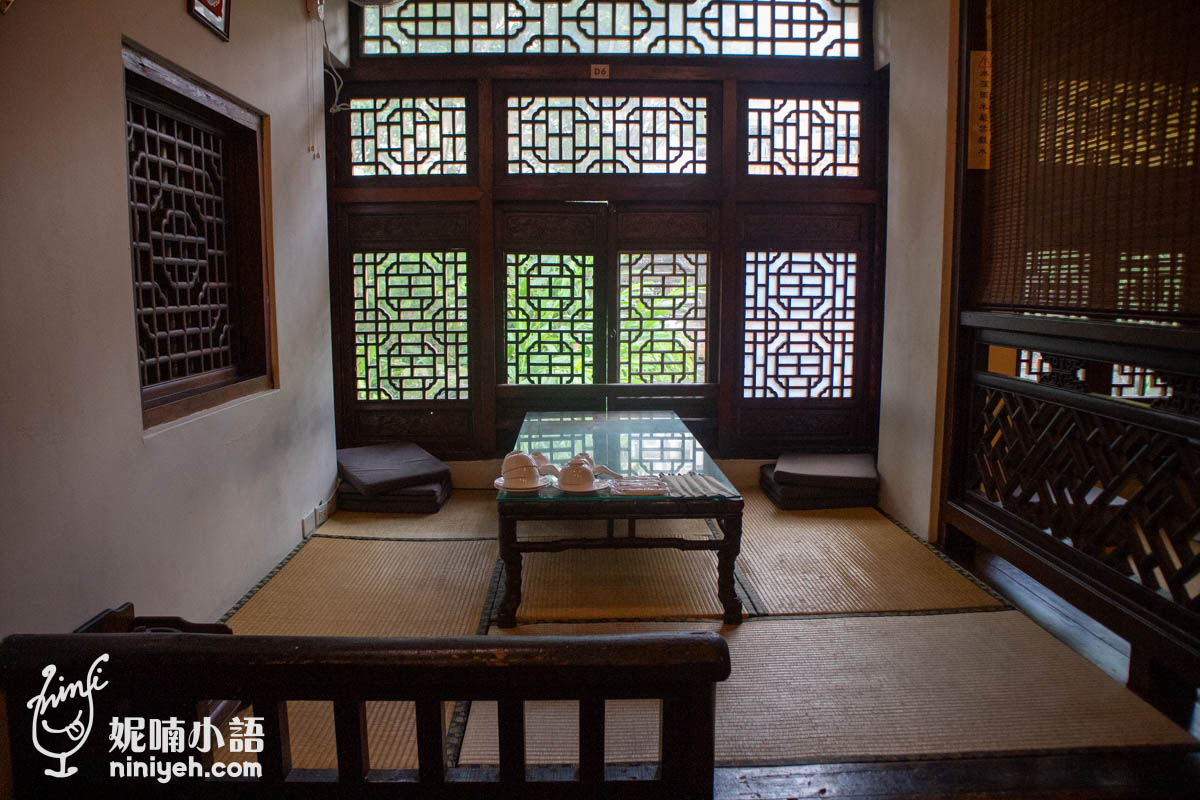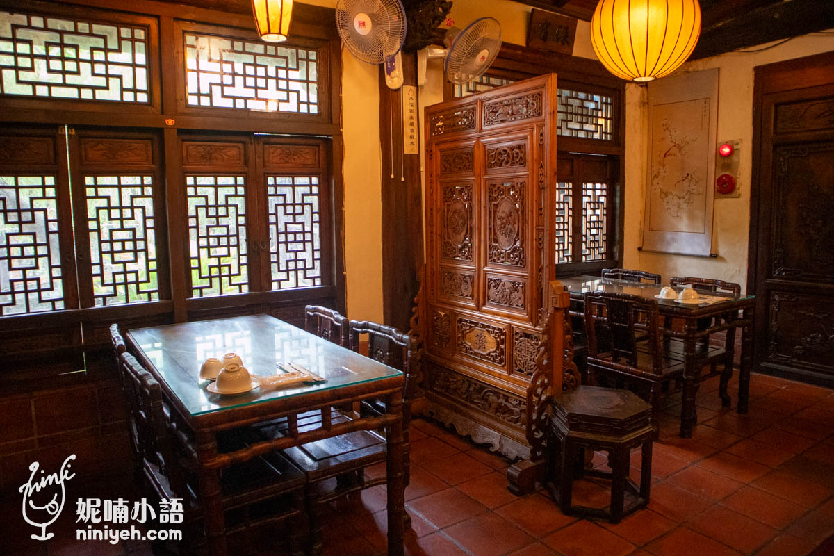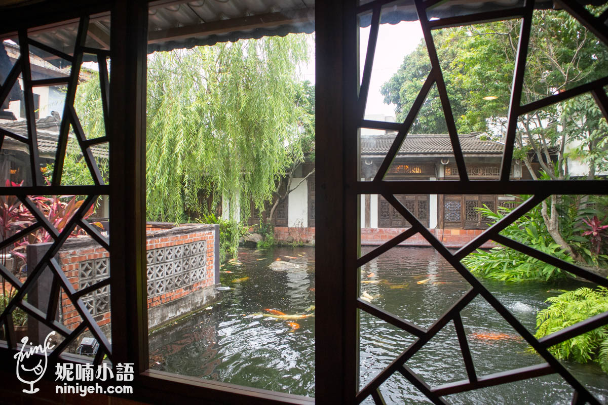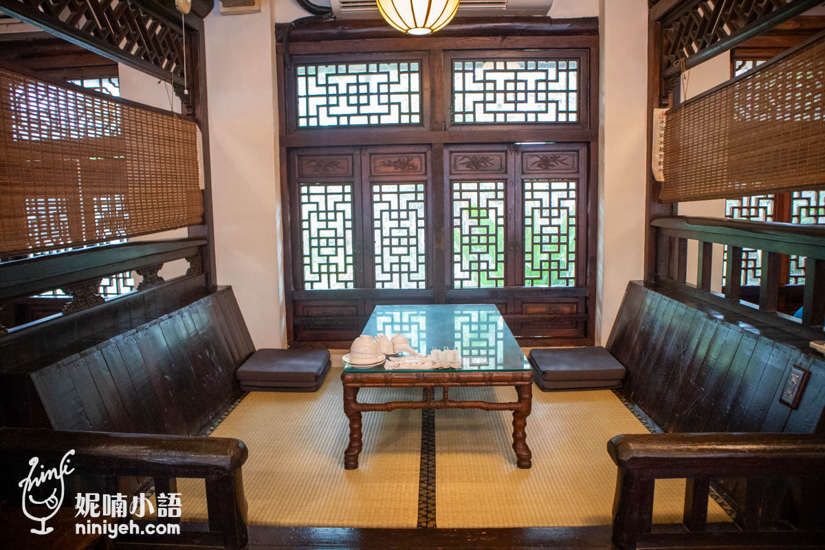 走進『竹居茶樓』不禁讓我想起台中的《無為草堂》、新竹的《The One南園人文客棧》,都有古色古香的迴廊、小橋流水和江南庭園,燈籠高掛、柳枝垂墜還有窗花陪襯下顯得仙氣飄飄,不過 『竹居茶樓』沒有前兩家這麼細心維護,難掩老舊氣息。