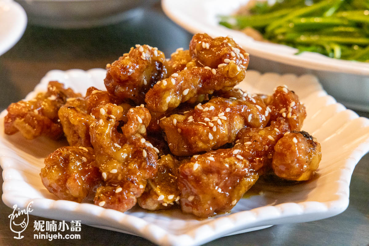 一直以來我都不太喜歡甜鹹交錯的中華料理,譬如糖醋排骨,不過這次點的香橙排骨是家人都大讚搶食,用了去骨又帶筋肉的子排油炸,本身肉質扎實彈性咬下特別彈韌,裹著收緊橙汁的糖衣,像是吃到脆殼,甜膩膩脆響響,很推薦。