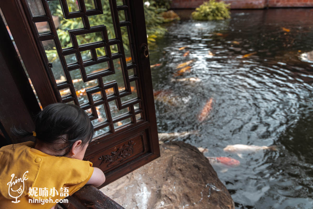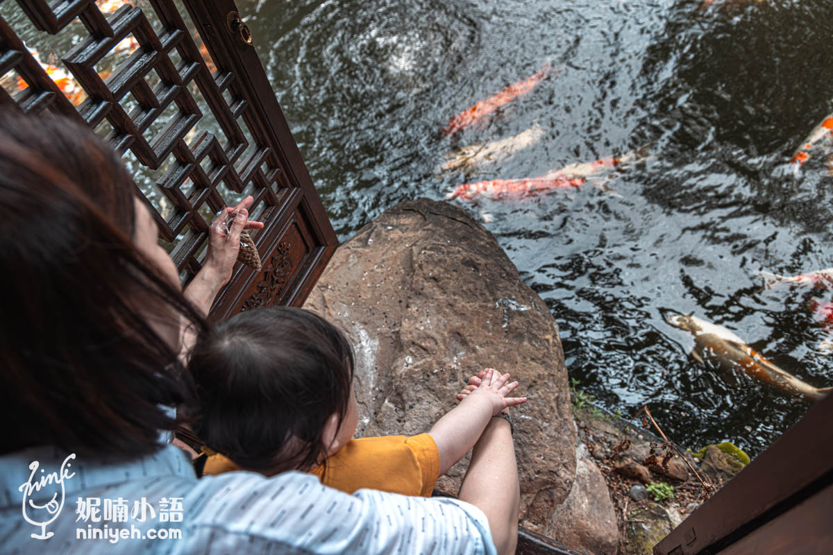女兒圓圓坐不住的時候直接開窗讓她餵魚,這麼一玩就能玩上許久,餐廳櫃台有販售魚飼料一包20元,媽媽我看著女兒小手抓著魚飼料餵魚也覺得好療癒呢。