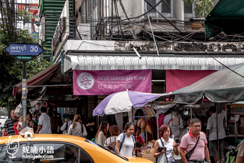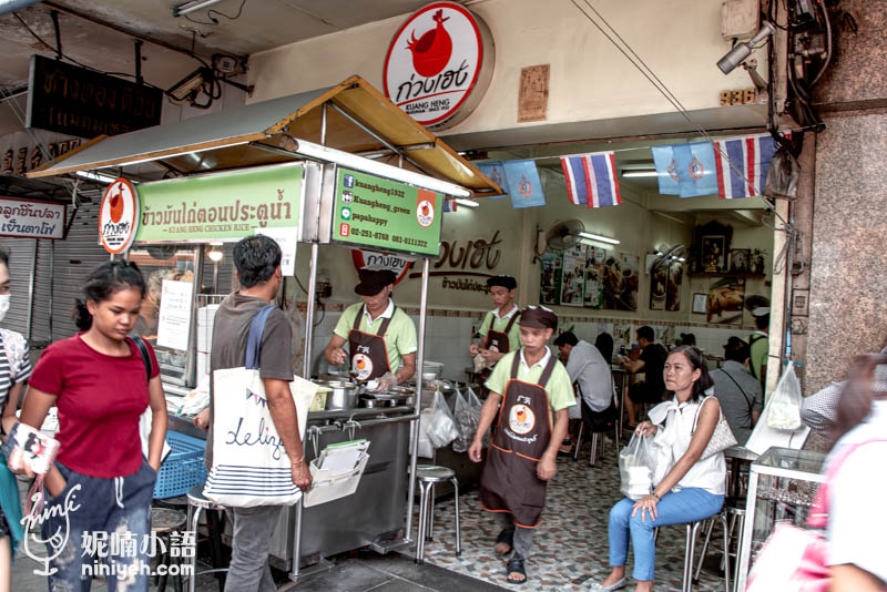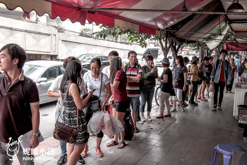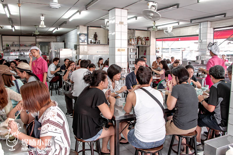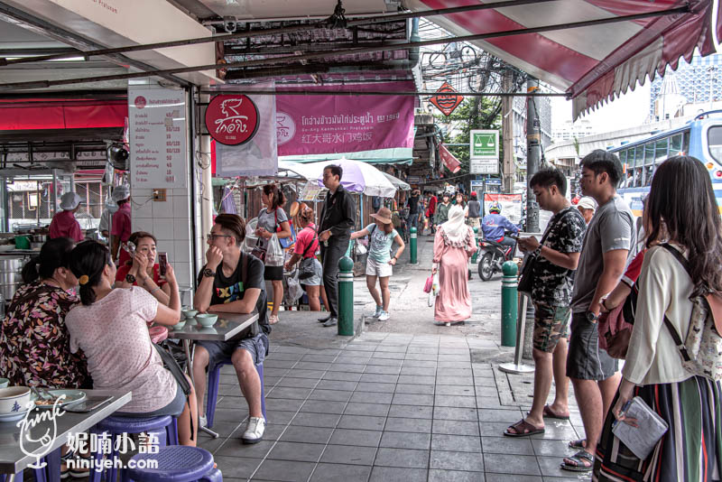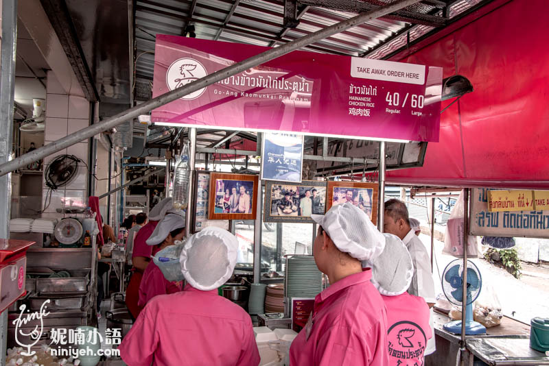 水門市場粉紅制服雞肉飯曼谷僅此一間,每天要消化四面八方而來的遊客和當地人,所以排隊是一定避免不了的,不過翻桌率相當快速,別被人潮嚇到,門口有告示牌以中文標示排隊路線,內用與外帶是分開進行、分邊排隊