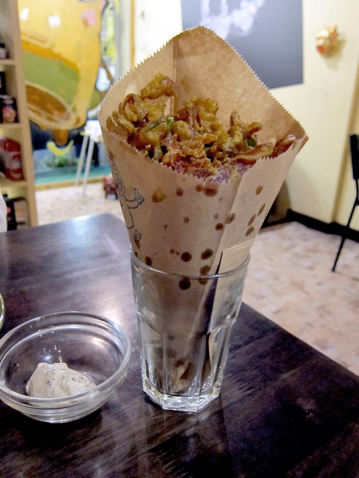 沾著酸豆美奶滋有種美式的吃法~單吃配啤酒就是很道地台式的吃法!都很適合