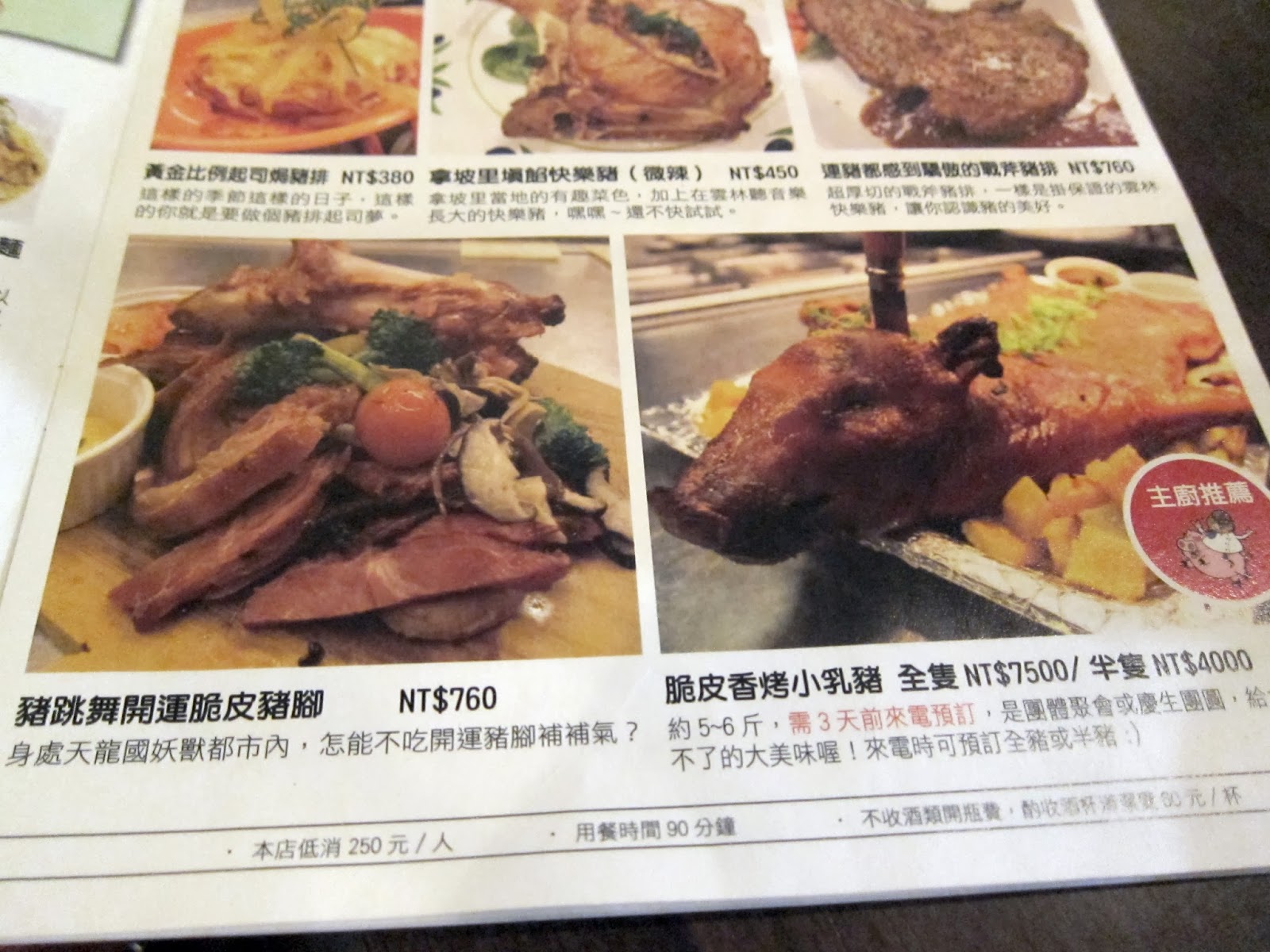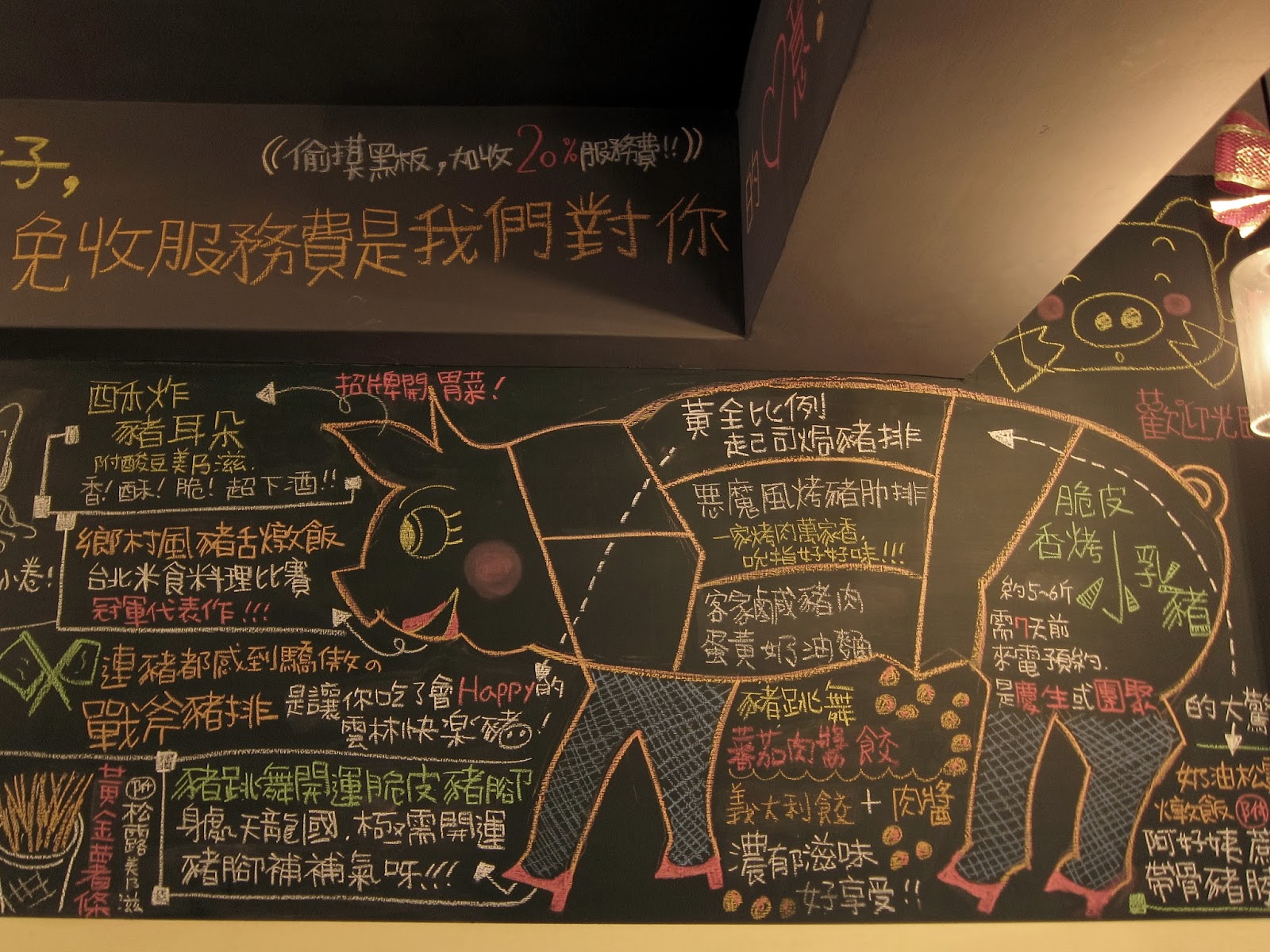 牆壁上有用粉筆畫了一隻小豬的區塊分解圖,上面寫了店家的菜單和創意解說~超可愛XD