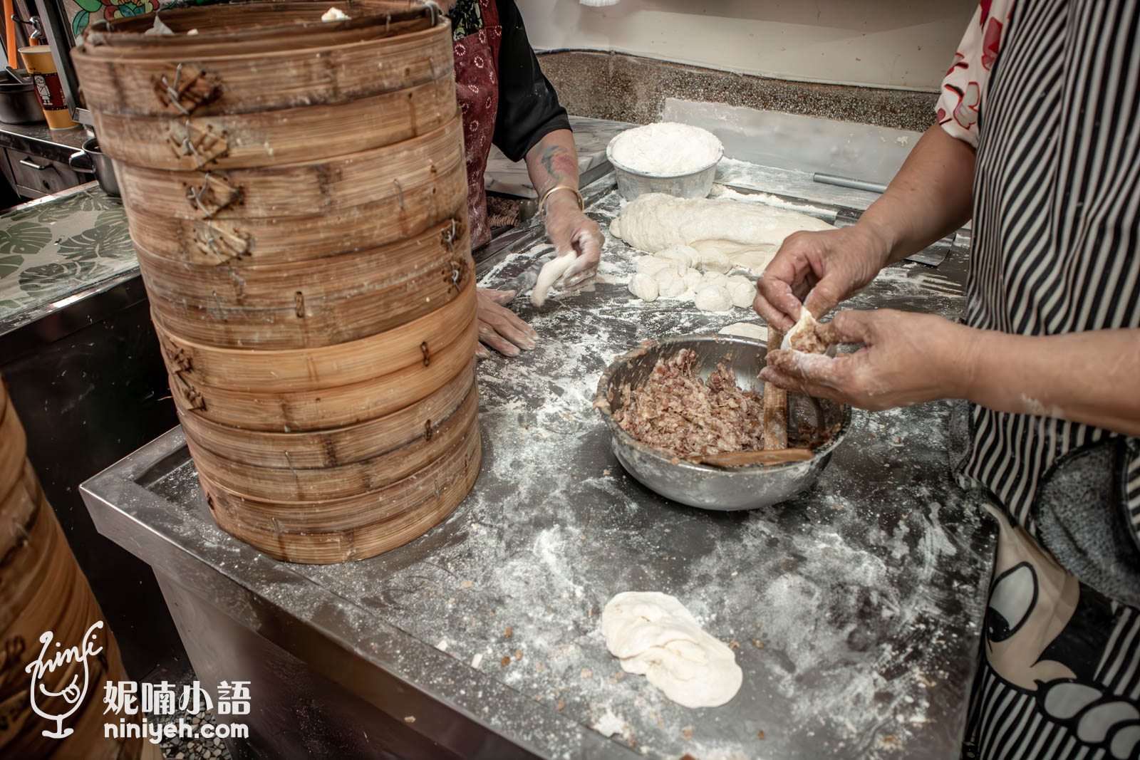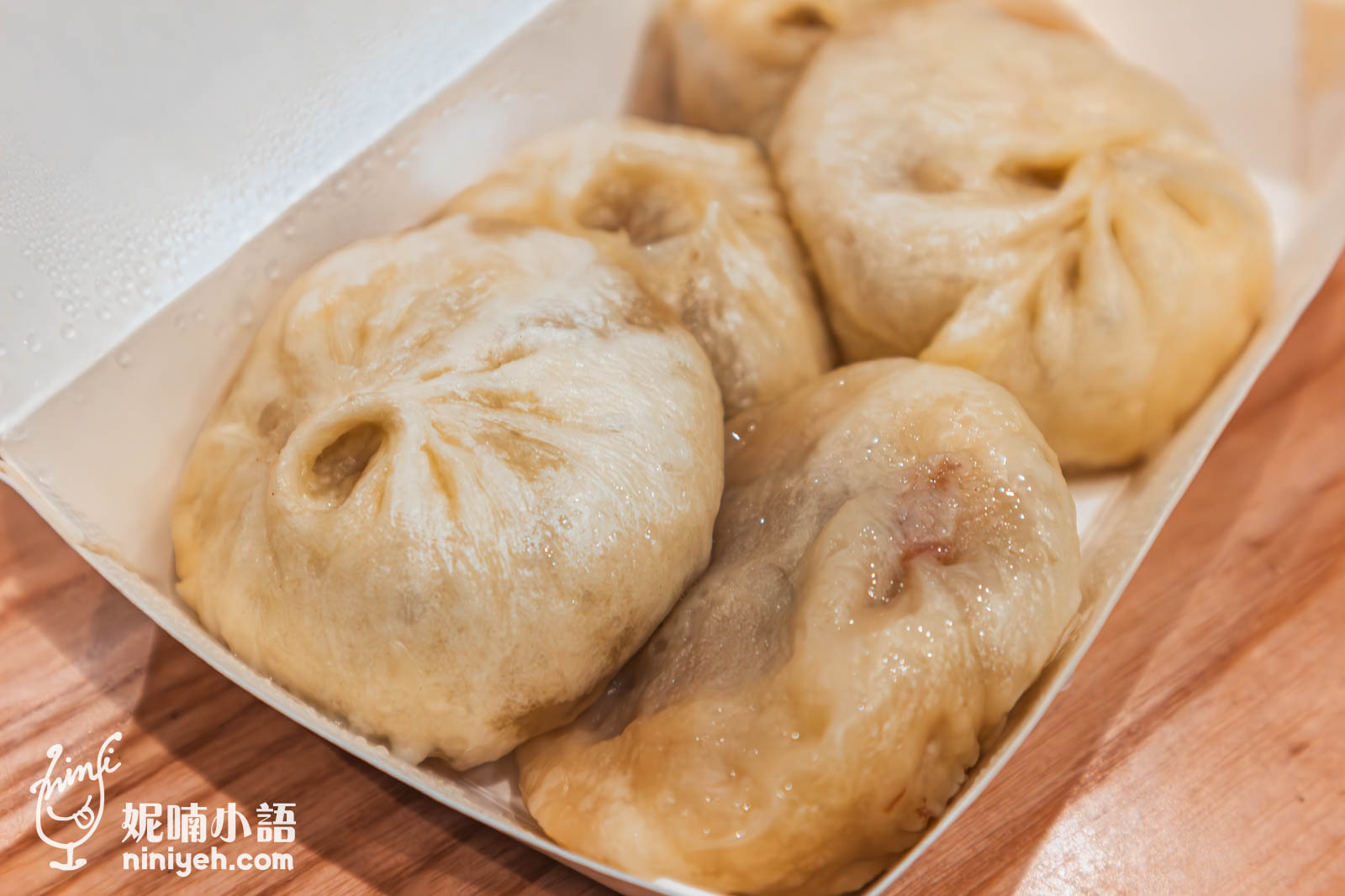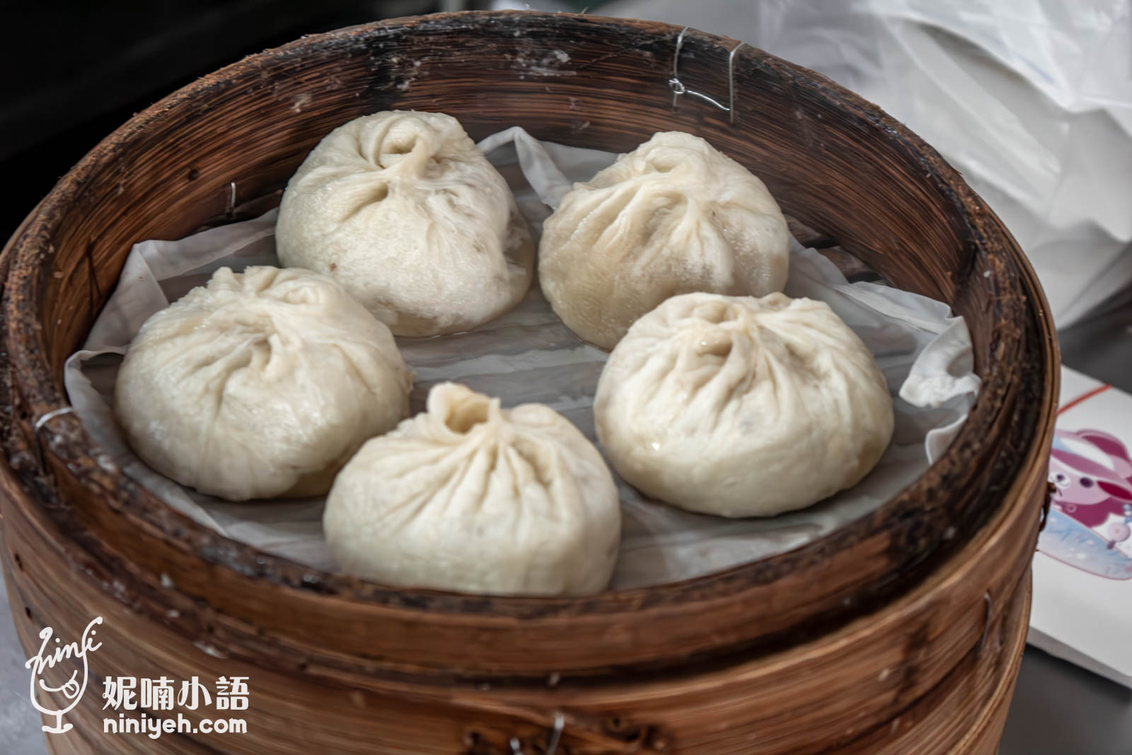 三兩個阿姨現場不斷和麵擀皮包料,一籠籠現蒸小籠包出爐就賣光,看到這小籠包也太大顆了,一顆約莫有掌心大,五顆吃完肯定飽。