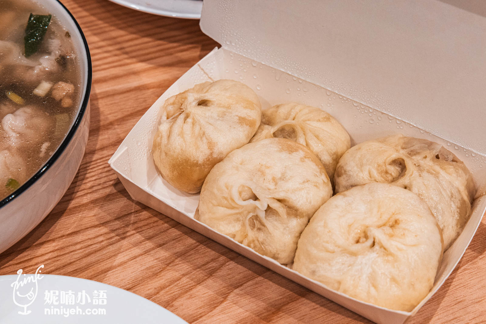 外帶回家一定不及在現場吃得好,因為熱氣影響了口感,稍微打點折,以家族從小吃慣外婆手擀包子水餃的我來說,對『德記小吃部』的小籠包還是點頭滿意,最喜歡包子皮用的燙麵,外皮粗糙,吃來柔軟不帶筋性。