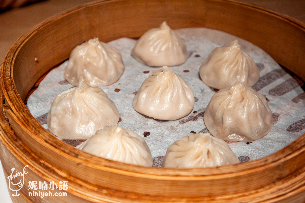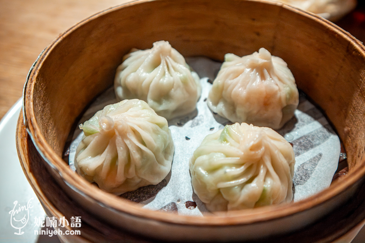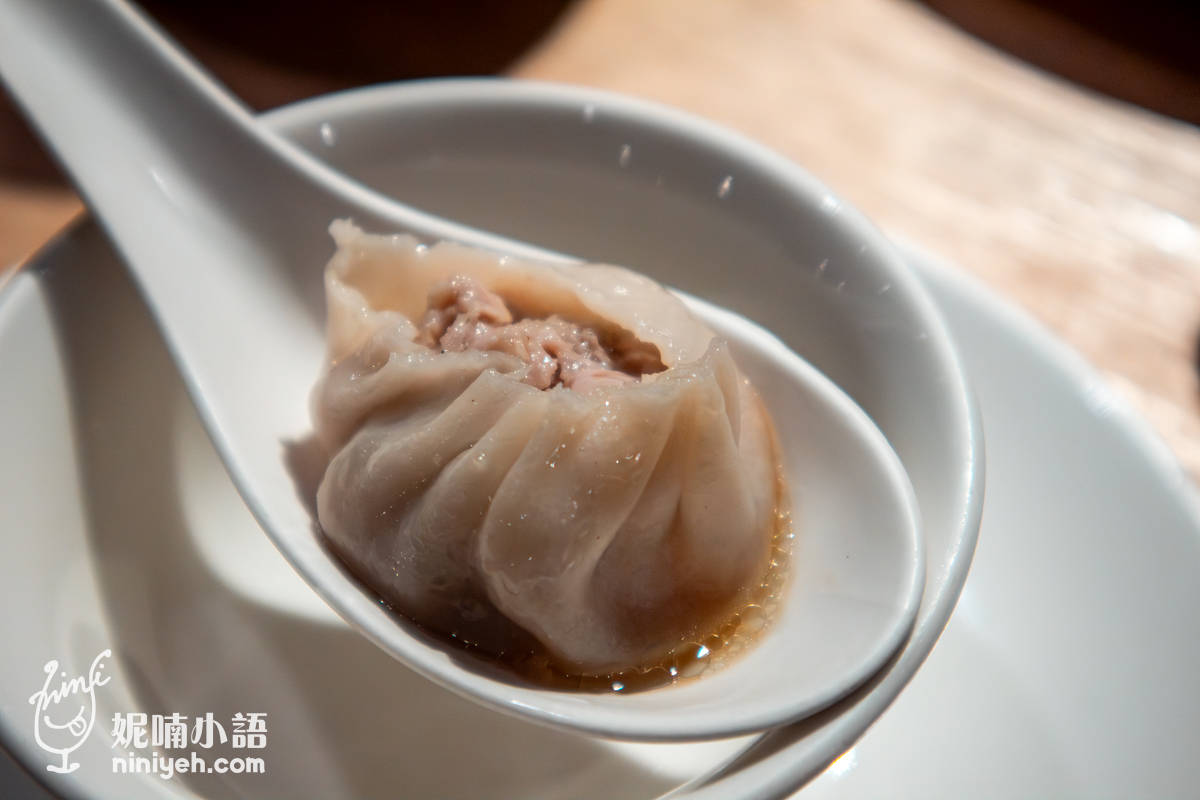 懶得細算湯包是不是有媲美經典的18摺,每顆小籠湯包鼓滿著肚子沉甸甸地,在光影下剔透模樣令人垂涎,一上桌開蓋,迫不及待快手拿顆起來一咬,皮真是薄透阿,連中間包摺的收口吃起來都這麼細,整顆送入嘴裡上下一擠壓就「破皮」了,飽和的鮮濃肉味嘩地填滿嘴,還有肉餡也是重點,不知是手工來回拍剁,還是機器反覆混絞,肉末幾乎無感的細緻,優秀啦!!