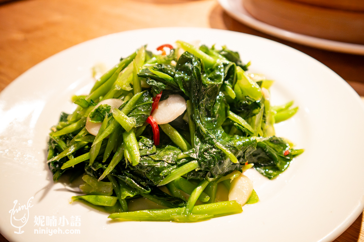 別看這芥藍藏綠色的模樣,吃起來梗脆葉嫩的,非常順口,嘴裡也不殘留苦澀,加上多一層工法的斜刀切,還有不帶油的大火清炒,都讓這盤炒芥藍更多了一份細膩滋味。