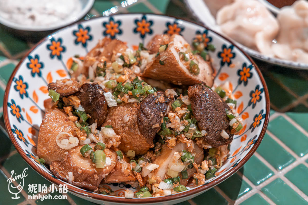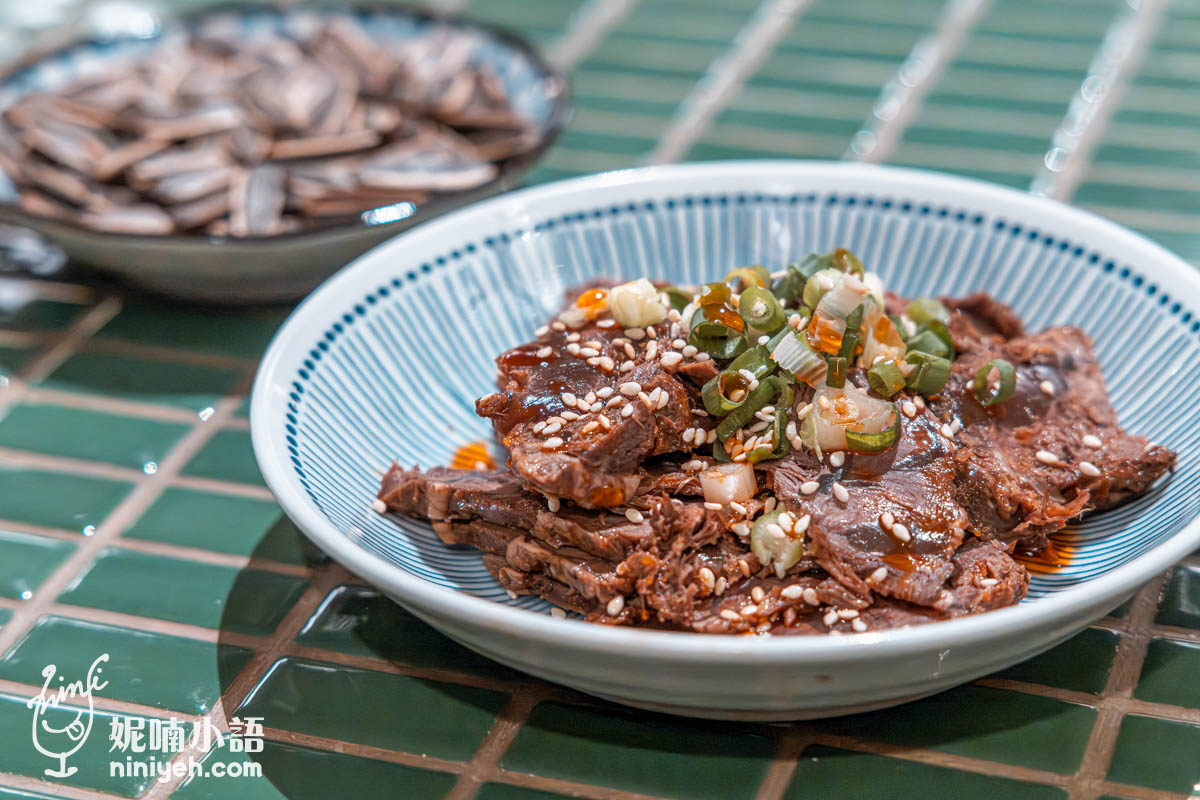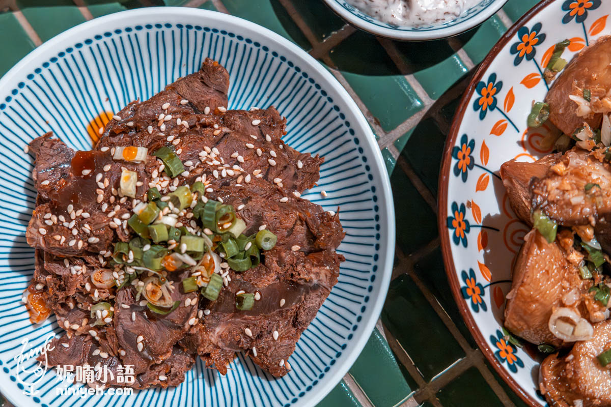 這道〈阿罵的滷牛腱〉切的夠厚,誠意十足,也因為夠厚,所以吃的到筋肉交織的層次感,牛腱特有的筋膜在滷製後軟而不爛,吃起來有彈性又柔軟,加上滷汁的濃鹹加持完全入味,非常適合下酒。
