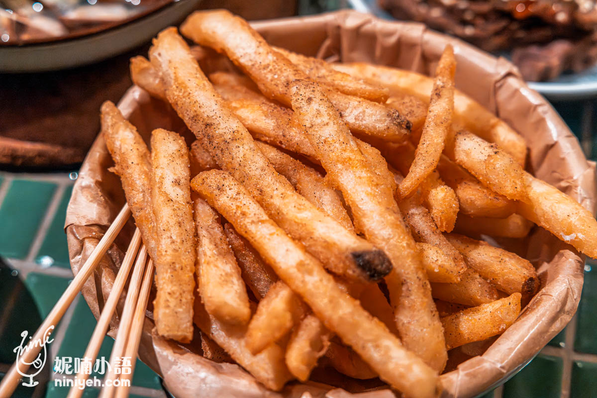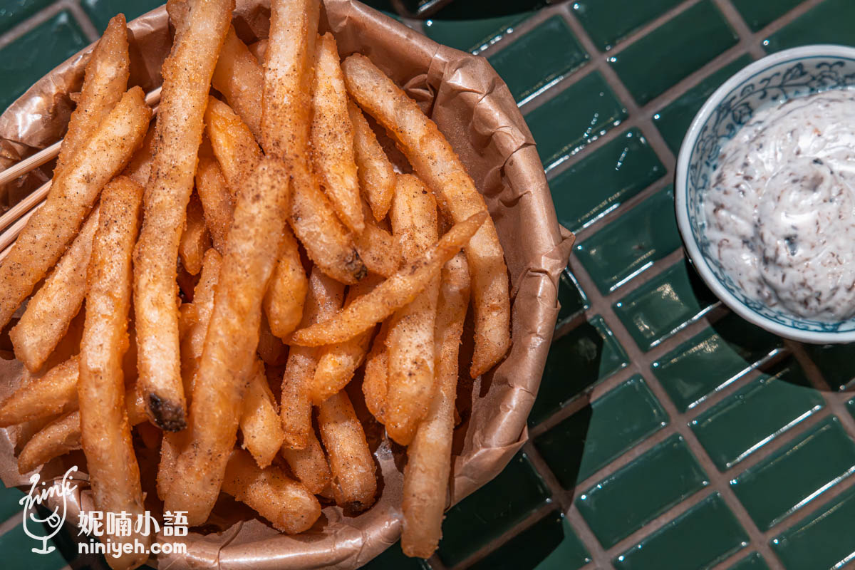 炸薯條是飲酒人士都知道餐桌必點的基本款,因為適合沒有壓力的邊吃邊聊,就連冷了都好吃,撒上黑松露鹽與黑胡椒粉的金黃炸薯如果嫌香味不夠,可以搭配一旁的松露醬,總之松露薯條只要菜單上有一定是我必點的 Finger Food。