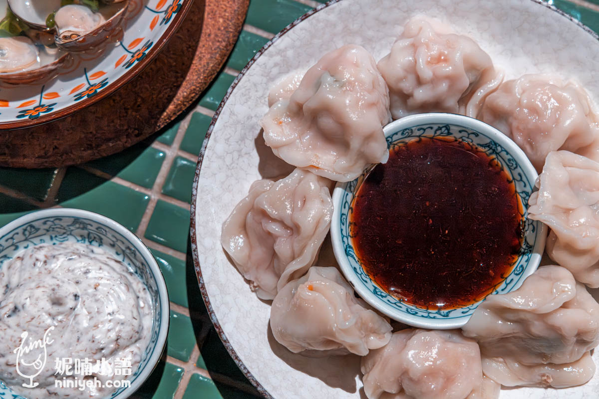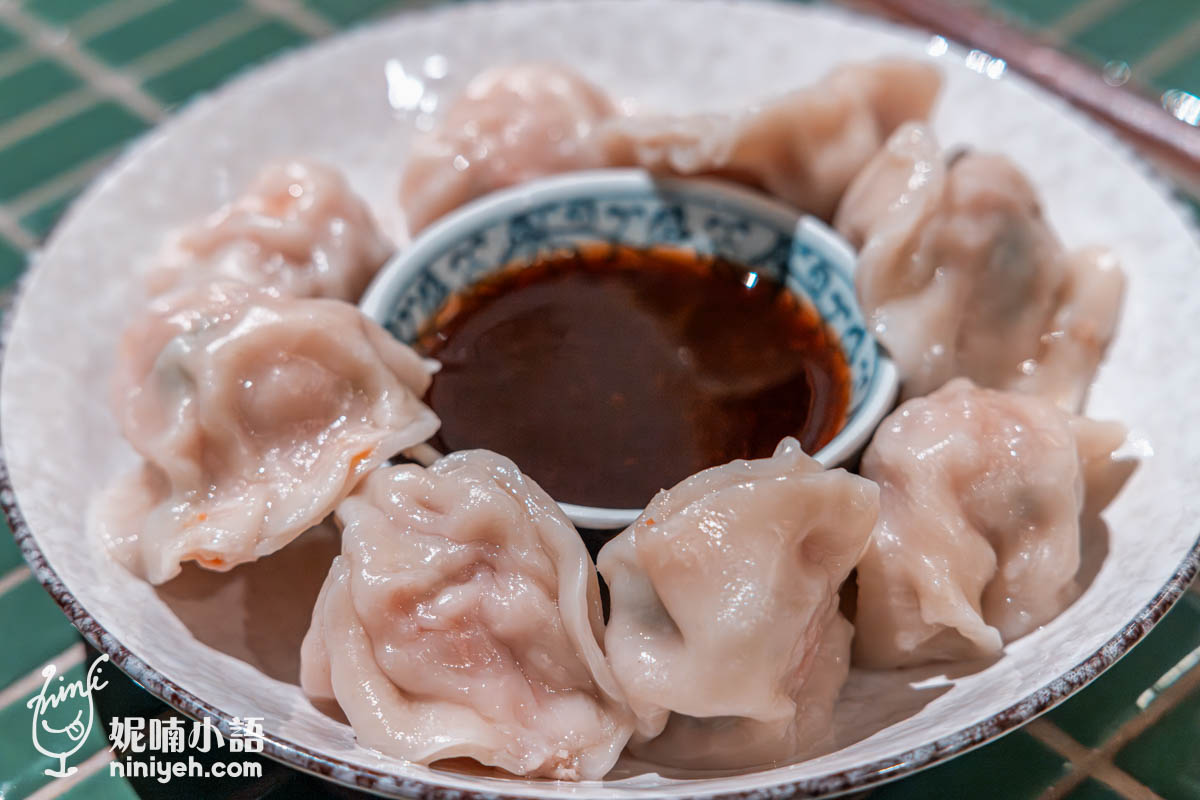 喝酒的朋友跟我說水餃能解酒,好像是沒有根據的無稽之談,但好像吃了水餃頭腦真的會比較清醒,無論如何,我的雷達告訴我,《冰茶專賣店》的蝦仁水餃必須點,身為吃山東麵食長大的眷村小孩,單看這水餃收緊的外皮,透出蝦肉的粉橘肉餡,結實飽滿的模樣就先印象加分,吃來真有飽滿扎實的甜脆口感,中間一碟紅油醬汁沾起來吃,超涮嘴。