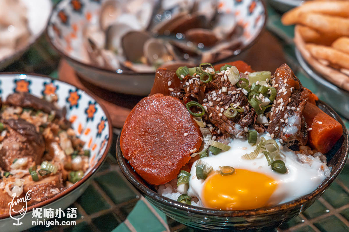 真心覺得這間餐酒館很會滷牛肉!不論是先前〈阿罵的滷牛腱〉還是現在這道〈紅燒牛肉飯〉都是長時間文火慢燉,肉質纖維入口即化還帶黏唇膠質,有種恰到好處的「彈韌口感」,紅蘿蔔潤軟不糊爛,恰好與牛肉形成風味互補,半熟蛋的加持讓整碗飯口感更滑順濕潤,是牛肉飯的超級神隊友,看似小碗也能有大味道。