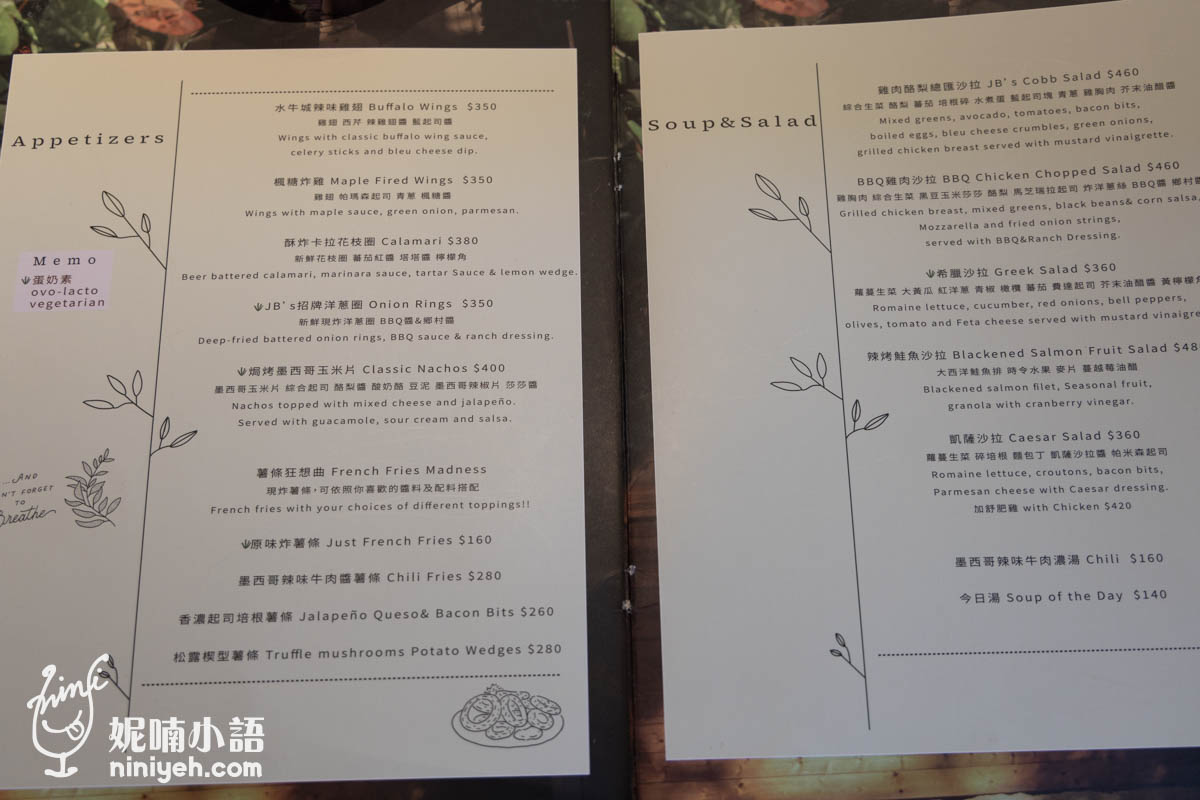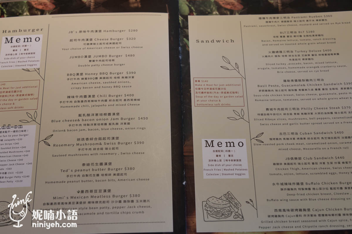 《JB’s diner》菜色真的太多,就不逐一展示,光是美式漢堡、三明治就多達近30種,還有開胃菜、炸物、塔可、沙拉,吃素也有,主餐都能加價成套餐,還有飲料喝到飽。