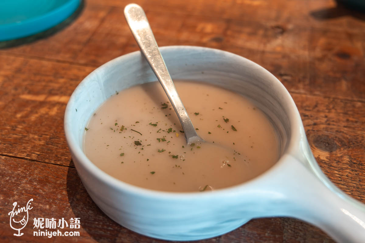 點主餐升級套餐可選濃湯或沙拉,今天準備的是蕈菇濃湯,湯碗端上來的時候驚覺也大大份了吧,不愧是美式餐廳。