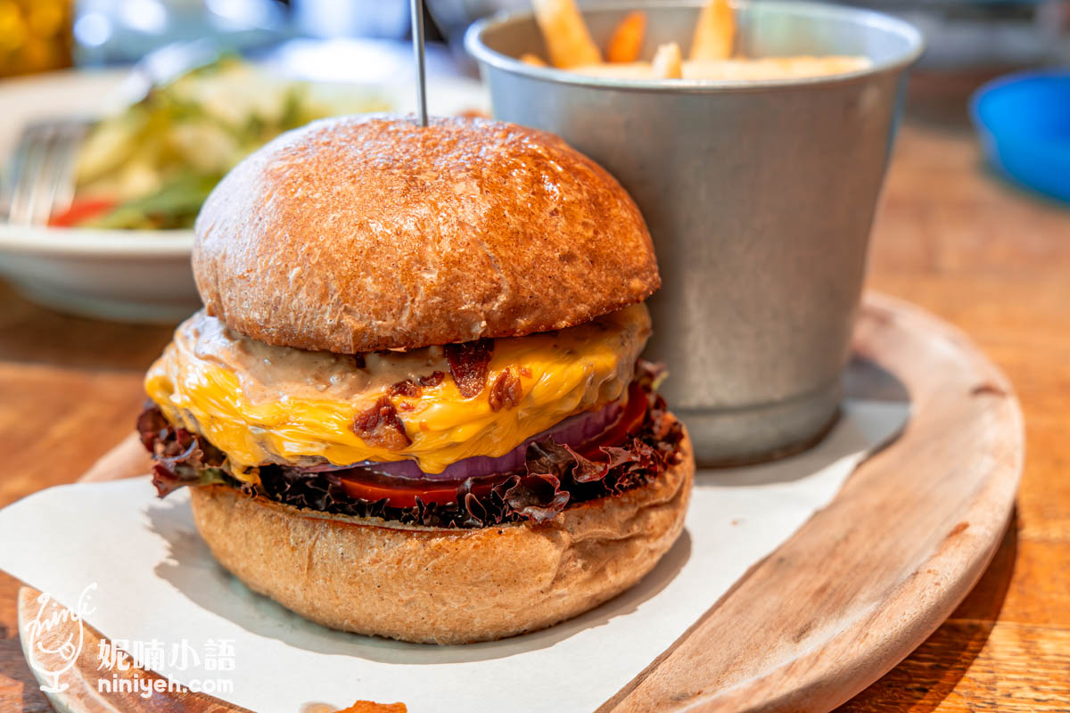 〈泰迪花生醬漢堡〉用的是黑麥麵包,拿在手上不僅油滋滋、沉甸甸,還有一種酥脆又蓬鬆的彈性,大口一咬真的會脫臼,塞進嘴裡的滋味實在豐富,尤其花生醬濃膩的緊附在齒面,那股化不開的黏醇,更驚喜的是時不時吃到有如糖粒的培根碎,好跳!更別說牛肉排的多汁水潤、起司的絲綢香濃,是款吃了想轉圈圈的開心漢堡!!!