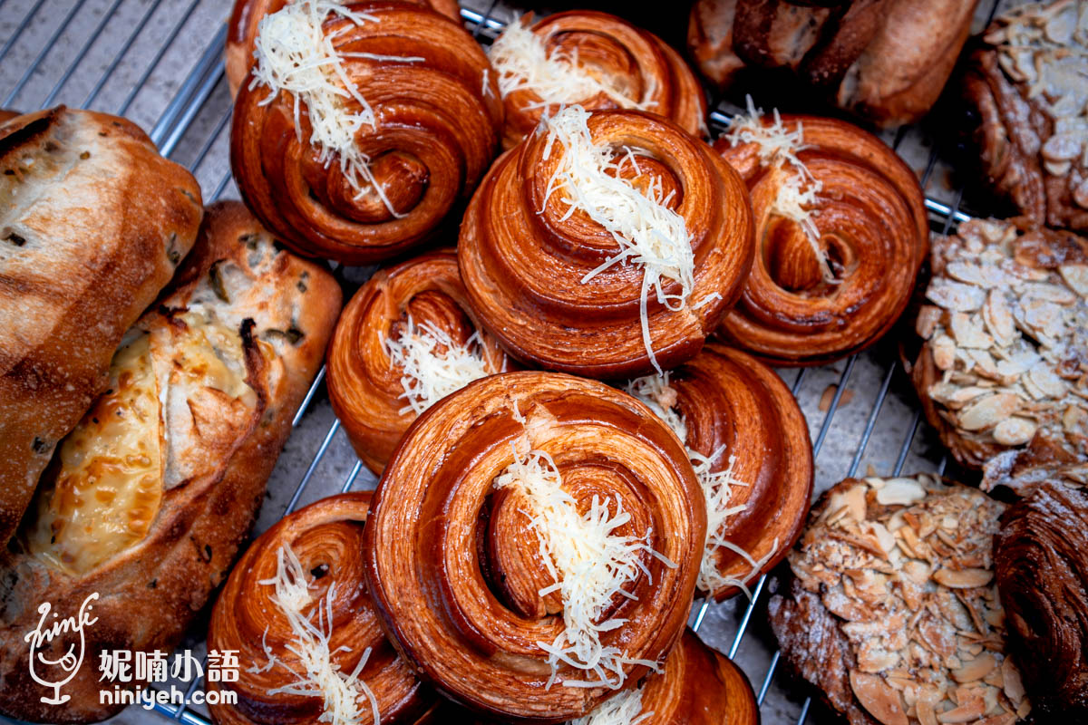 因為「黃仁勳最愛杏仁可頌」而讓我知道了這間『KANG Artisan Bakery』。心想,怎麼有台北好吃麵包店是我不知道的,實在有點糗,逮到機會就迫不及待登門『KANG Artisan Bakery』,開門不到半小時杏仁可頌就完售,每天上午11點和下午15點分別出爐不同品項,可以臉書私訊預訂。