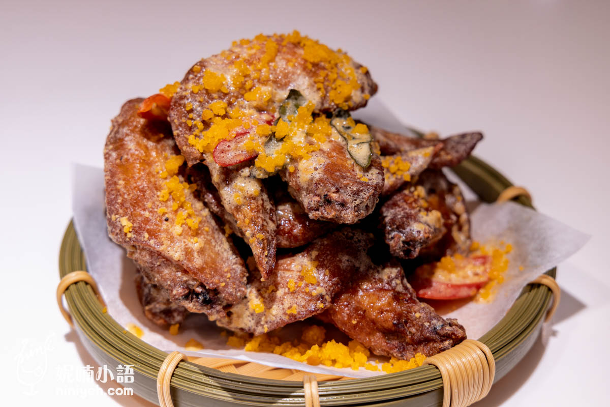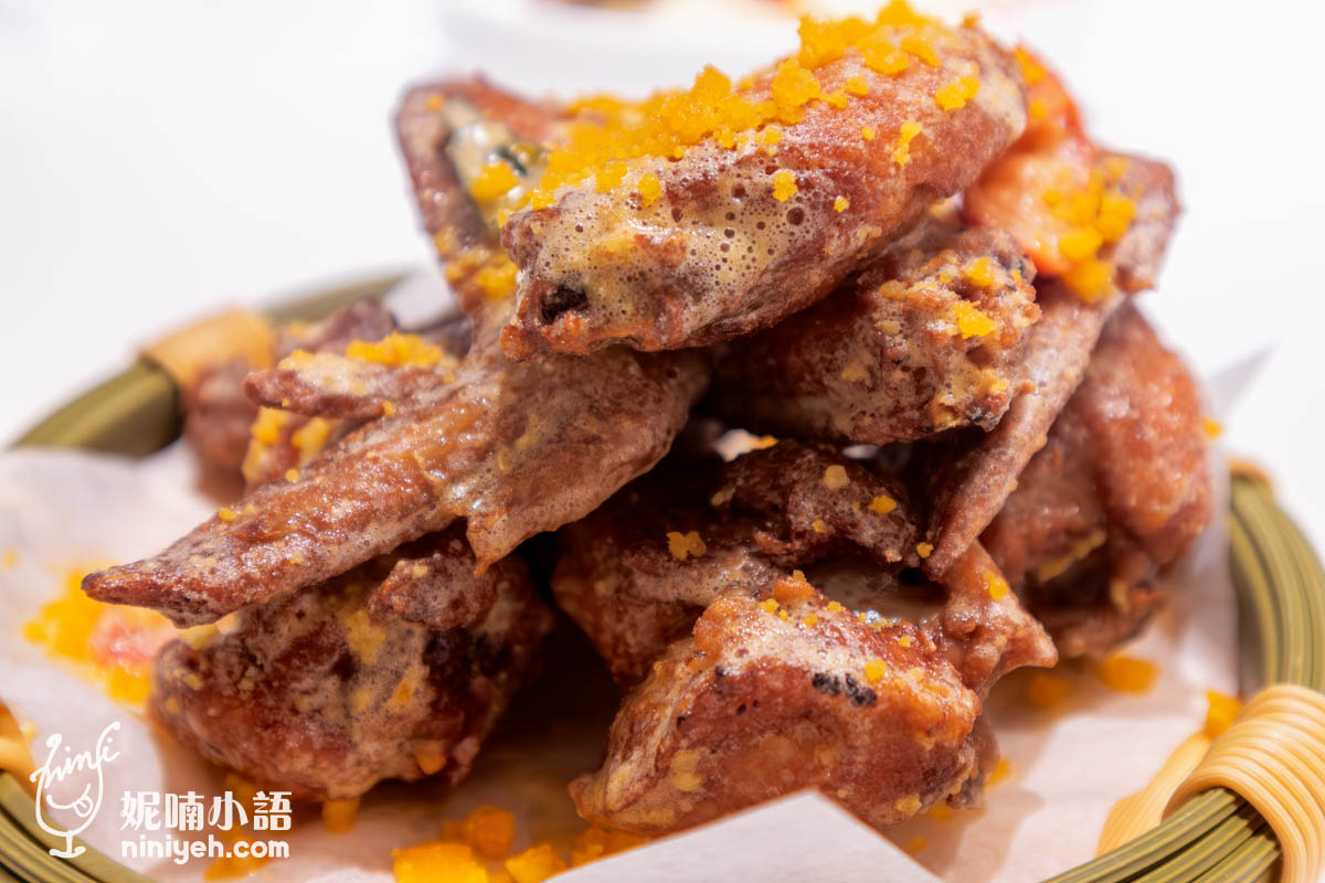在我心中,泰式炸雞的美味更勝於經典的美式炸雞、與後來崛起的韓式炸雞,那薄皮肉少的小雞翅總是炸得焦氣氾濫,乾香酥脆的叫人喜歡,Lady nara(忠孝SOGO店)這次推出新菜色是鹹蛋黃系列,〈鹹蛋黃炸雞翅〉是其中一道新品,光聽就知道好吃,端上桌也沒讓人失望!