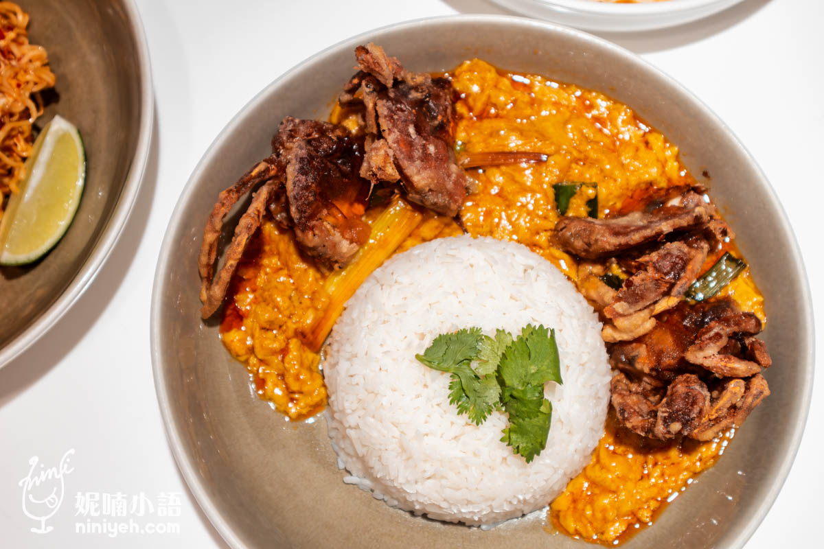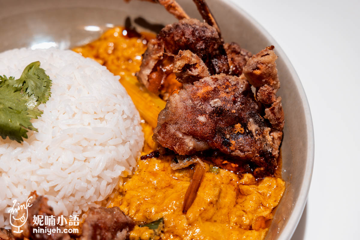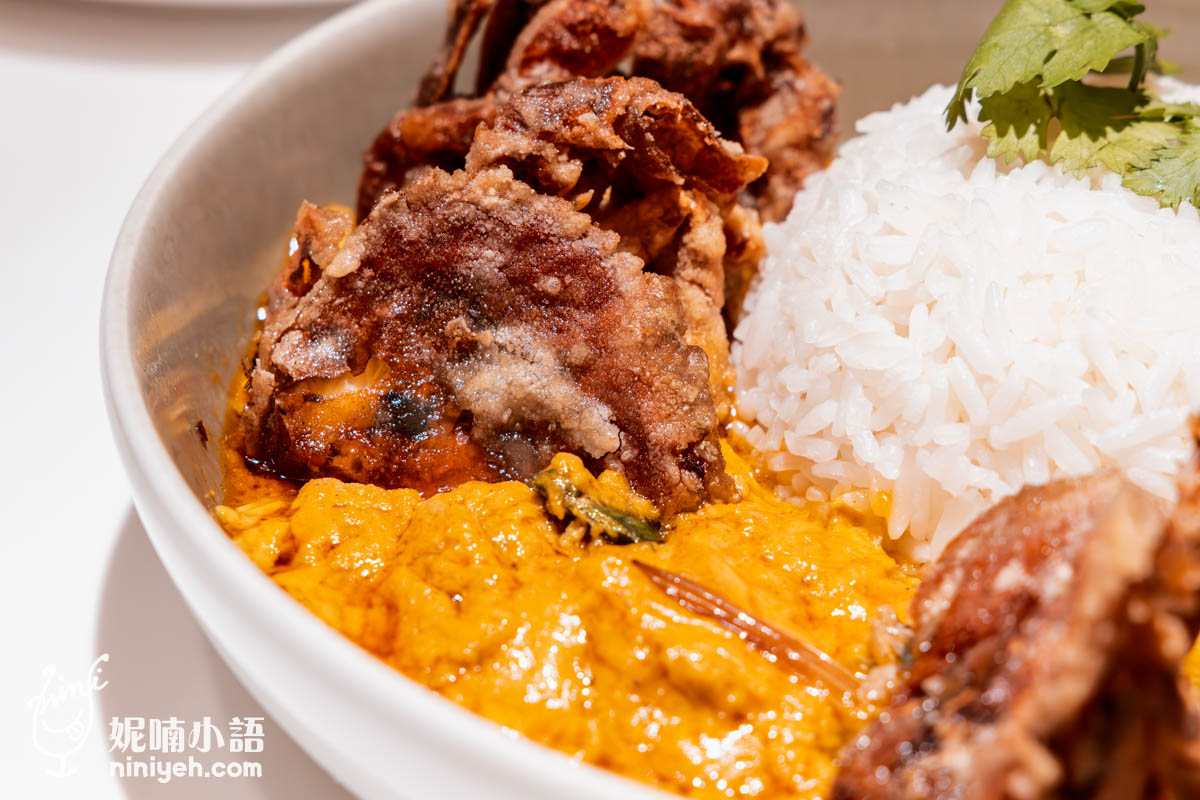 如果你也是泰國旅遊愛好者,看到 Lady nara 推出的這款新菜〈黃咖哩軟殼蟹飯〉,會不會跟我一樣腦海裡出現曼谷建興酒家的咖哩炒螃蟹呢?嘩,還記得當飯菜一端上桌,不只噴香還冒著煙氣,抬頭一看好美啊,金黃潺潺閃著紅油發亮,忍不住趕快拿湯匙狠狠地咬一口配飯吃!