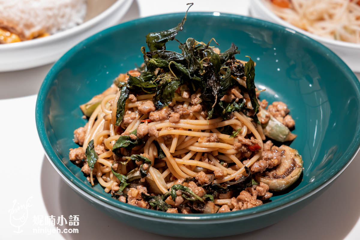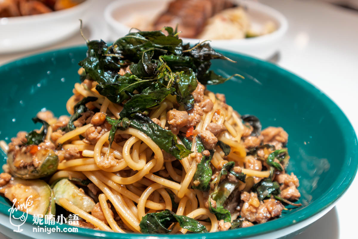 以往打拋豬系列是以歐姆蛋飯、炒泡麵的搭配組合,這次推出了義大利麵也是新菜之一,多年前初嘗他們家的打拋豬歐姆蛋飯不合口味,而今再吃發現口味調整了再進化,在追求口味正統之虞又能迎合大眾口味,是我覺得很優秀的地方,好比說用了泰國進口打拋葉取代坊間充斥的九層塔,刻意油炸來掩蓋打拋葉辛烈氣息只留香,配料中搭配泰國圓茄,營造出柔腴脆口的層次感,把泰國元素突顯得恰到好處。