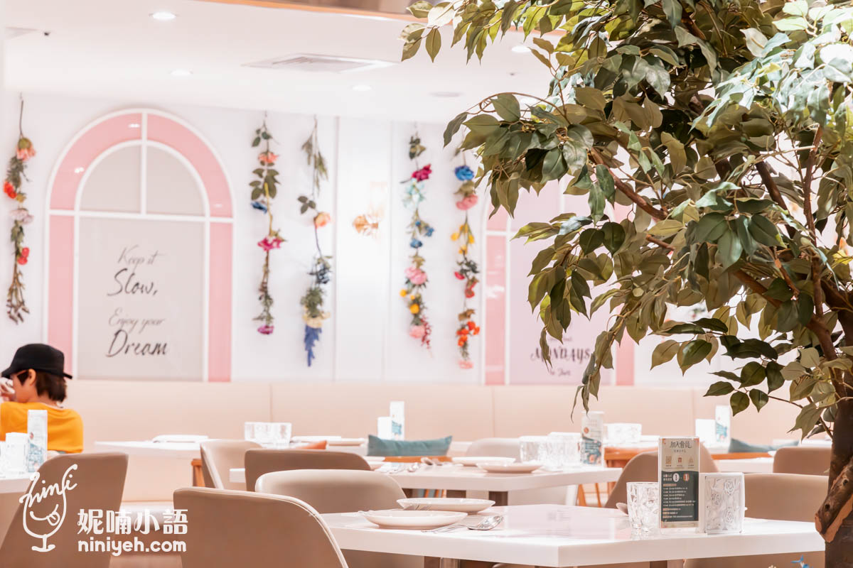 如果對『Lady nara』品牌很陌生,可能會錯以為走進了網美咖啡廳,別於傳統泰式餐廳營造的沉穩氣息,『Lady nara 曼谷新泰式料理』所到之處全是充滿粉紅泡泡的少女色調,舒服的奶茶配色點綴繽紛花草,不論心情圓缺,整個空間感就是有種撫慰療癒的氛圍塑造,讓女孩們特別買帳。