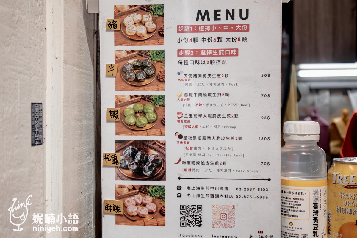 『爆汁老上海生煎』中山總店位在中山北路的條通巷弄間,從捷運中山站3號出口走過來大約5分鐘就到,如果從中山商圈逛累了,走過來買幾顆生煎包當作台式下午茶也很不錯,只是生意蠻好的,點完餐要稍微等一下,連外國人也慕名光顧!!!