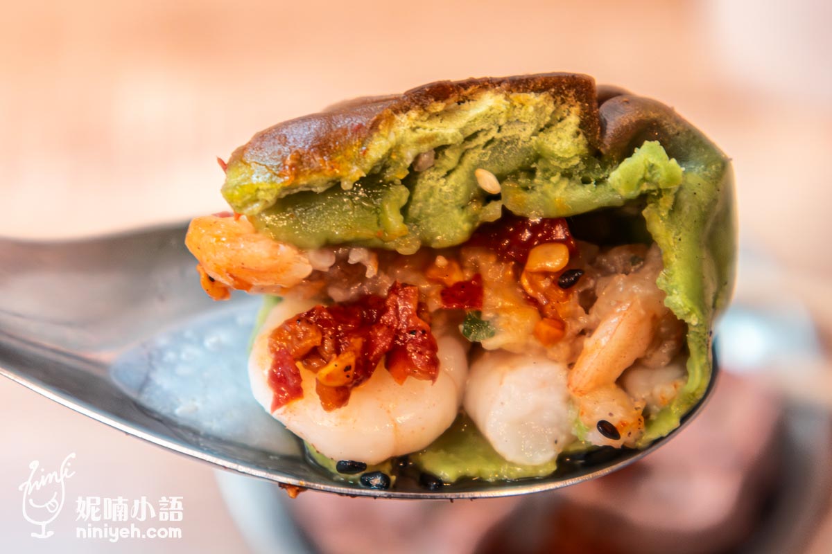 若不論麵皮,餡料部分是處理得很不錯,粉麻粉辣脆皮生煎有非常多的湯汁,像吃豬肉餡餅一樣,還有這款創意口味肯定用了很多辛香調料,風味極具層次,讓我想起兒時吃到眷村奶奶曬的辣香腸,綜合了孜然茴香充滿地域氣息的香氣呢!!!