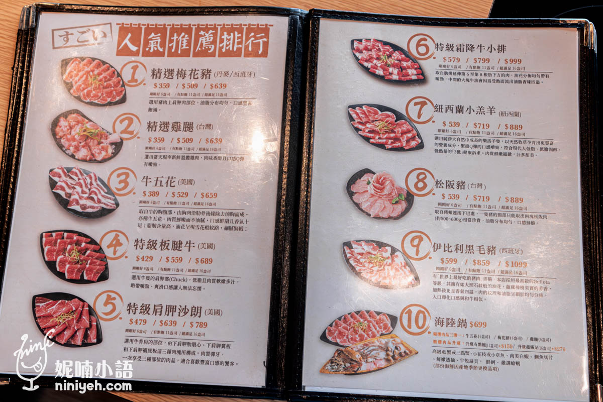 伊比利豬、A5和牛、霜降牛小排、紐西蘭小羔羊或是天使紅蝦、進口生蠔等海鮮通通有,也可以點海陸雙拼,難以抉擇也可以參考人氣推薦排行榜點餐。