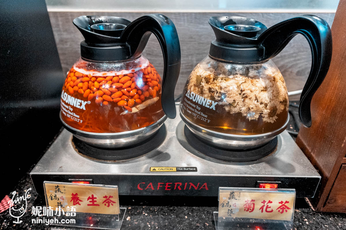 火鍋店的飲料區一直以來都不太吸引我,雖然有咖啡、汽水、果汁可以解膩解渴,但向來不在餐間冷熱交替的我始終不太感興趣,但是這回看到『蔬鍋藝鍋物鶯歌店』飲料有養生茶,是讓我驚喜的亮點呢。