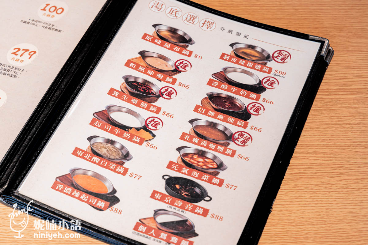 只要是火鍋控對於『蔬鍋藝鍋物』菜單應該秒懂,先選擇涮涮鍋湯頭,接著選擇肉品或海鮮等套餐即可,凡點鍋物都享有自助吧無限吃到飽,光是湯頭就有12種口味選擇,有選擇障礙難以取捨的也不用擔心,就點個人獨享鴛鴦鍋吧!!!