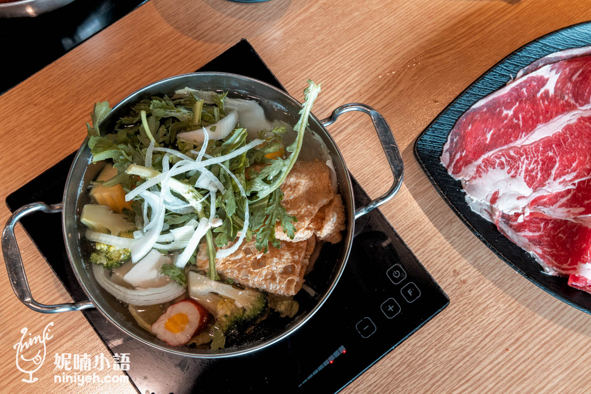 自由裝填的菜盤中只有些許火鍋料,都是以天然食材為主,不少根莖蔬菜類很適合熬湯,比較生硬的花椰菜有事先汆燙過,下鍋就不需要久煮,這點蠻貼心的。