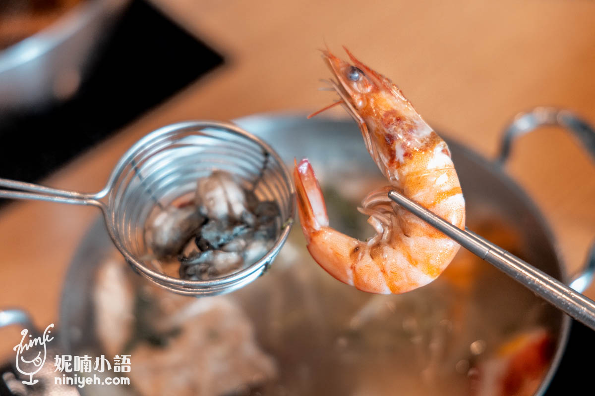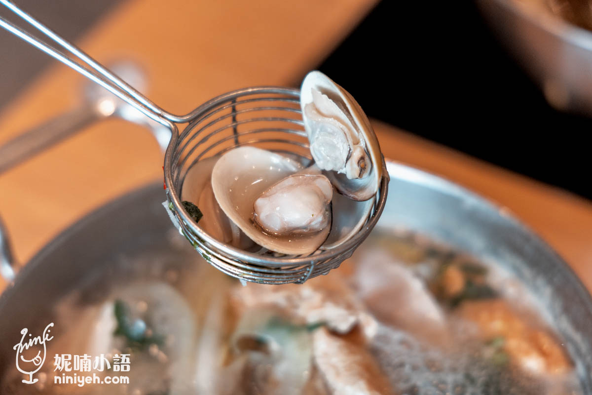 『蔬鍋藝鍋物』海鮮都合乎期待的鮮美,尤其蛤蠣每顆碩大飽滿,開殼後溢出的鮮汁讓湯頭更加升級,好喝的不得了,蛤肉更是不帶沙的好嚼,鮮蚵肚脹爆漿、白蝦新鮮脆彈,吃得滿意。