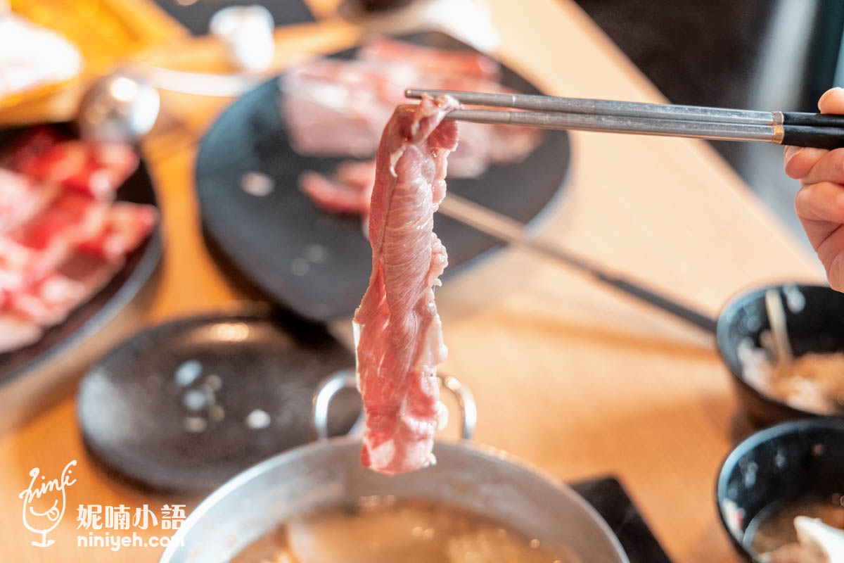 雖薄但寬大的特級霜降牛小排有豐厚的油脂,入鍋涮煮三五下,顏色轉脂粉色時最嫩,尤其油花部位蜷起的地方入口滑順彈軟最好吃。
