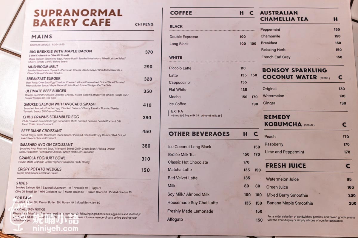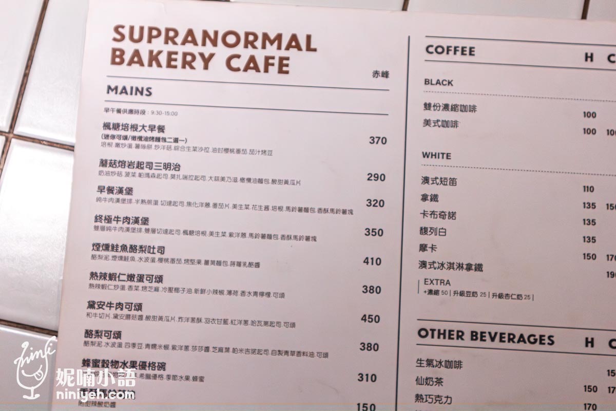 『Supranormal Bakery Cafe赤峰店』主要供應早午餐、麵包、蛋糕以及咖啡,品項不多,但卻是道道經典推薦,可頌、漢堡、大早餐盤沒有一個是主角,因為都很多人點,但要留意餐點全部只供應到下午三點。