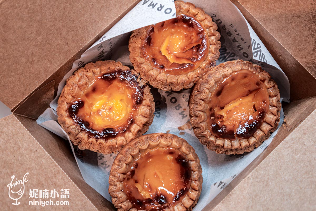 拿在手上有點重,外觀看起來也有厚度的〈超正常蛋塔〉,實則咬下去超輕脆,可以感受到齒間一層層把塔皮敲碎,發出脆裂響聲,伴隨烘烤完的焦氣、蛋醇與奶香,蛋塔餡更比布丁柔軟細嫩的滑進舌面,好吃到讓媽媽連嗑兩顆停不下來,好罪惡!!