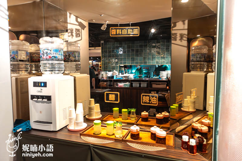 醬料和開水都擺放在自助區,有需要都可以自己添加使用,最推薦的就是自家炸的花椒辣油渣,酥香,喜歡吃辣的一定要多加幾匙!