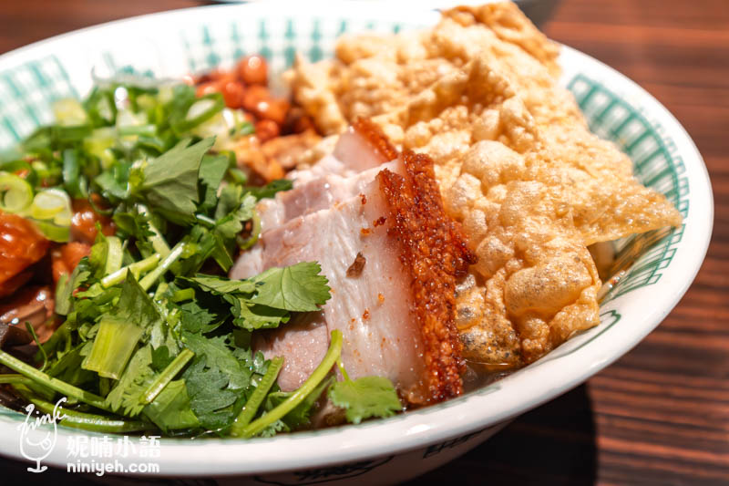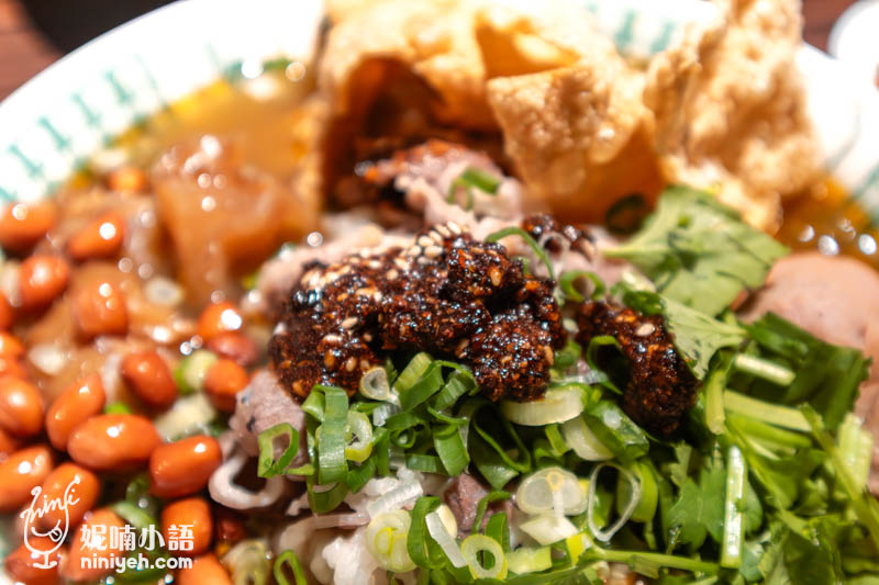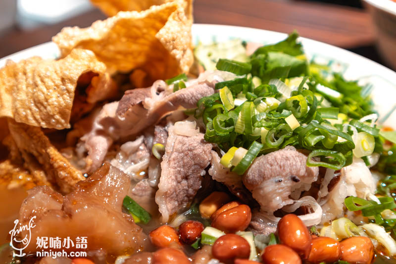 配料中的脆皮燒肉跟炸肥腸有著喧賓奪主的氣勢,脆皮燒肉有著酥脆油化的口感,脂腴肥糯,而油亮光澤的炸肥腸更是焦香,如同台式炸肥腸般的熱燙,咬下油汁滿溢,倒也忽略了酸辣不夠濃重地道的主觀感受,反倒另有種新奇感